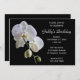 Invite guests to your upcoming b-day celebration with the pretty Orchid on Black Birthday Party Invitation. This elegant custom flowery birthday party invite features a floral photograph of a white phalaenopsis orchid flower blossoms on the stem with a black background.