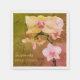 Your personalised napkin design features a close up photograph of an orchid cluster with a brushstroke texture on an mixed orange and ruby background. Fill in the template fields with your words, remove the text or customise to select a font style, size, and colour you prefer.