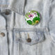 Orchids and palm leaves, pink, yellow, green and w 6 cm round badge