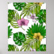 Orchids and palm leaves, pink, yellow, green and w poster