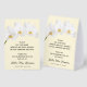 Modern memorial funeral paper tent style tabletop sign features white orchids on a pale yellow background and directions to guests on signing the guest book. MATCHING items in our collection.