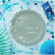 Elegant wedding paper plates featuring a beautiful and delicate white orchids line drawing design on one side, over an elegant romantic mint green background. Easily edit the template fields to add the bride and groom names in a classy white script.