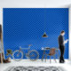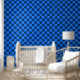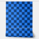 Blue and dark blue chequerboard pattern, creating a geometric, symmetrical design. The alternating squares suggest a classic, orderly feel.