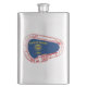 The product is a good size and came exactly as it was pictured. The lid is not attached to the flask, which could be dangerous on drunken nights... The print came out surprisingly well and looks very sharp. Would definitely recommend.