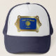 The design printed on this hat features the Oregonian flag surrounded by a metallic looking frame.