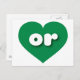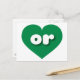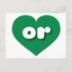 This postcard features a vibrant green heart containing the bold, white, rounded lower case letters or, a playful abbreviation for Oregon, the beaver state. The reverse side of the card is blank, awaiting your handwritten sentiments or customised text.