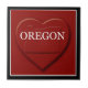 A graphic 3D look illustration of a heart and Oregon map with the text Oregon on a decorator tile. Original artwork: Copyright Charmaine Paulson