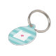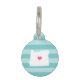 Let your furry friend show some home state pride with this cute Oregon pet ID tag. Design features a white silhouette map of the state of Oregon with a pink heart inside, on a tone on tone turquoise stripe background. Add your pet's name and contact information to the back in white lettering on an aqua background.
