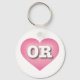 This keychain features a pink heart with a white-washed center containing the bold, white, upper case letters OR, the official abbreviation for Oregon, the beaver state.