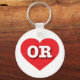 This keychain features a vibrant red heart containing the bold, white, upper case letters OR, the official abbreviation for Oregon, the beaver state.