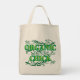 Organic Chick Tote Bag with green lettering and floral scrolls.