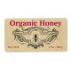Organic honey jar label featuring a honey bee icon in an ornamental cartouche frame, over sepia-tone background, with the date and weight of the honey. Use a round label on the cap for the name and address of your apiary. Specify a different type of honey: Raw, Clover, Local, All Natural, Golden, Cut-Comb. ⬡