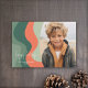 An organic abstract line art with green and coral colours. The modern design highlights your favourite photo for the Christmas season. The front also includes a calligraphy font for the greeting and a simple abstract art pattern on the back. If you need to move anything around, click on the customise button to make changes.