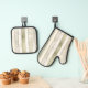 Organic Olive Ivory Faux Wood Stripes Christmas Oven Mitt & Pot Holder Set