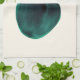 An understated tea towel with watercolor of organic abstract shapes in shades of mustard yellow and emerald green.