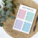 Post-it notepads, personalised with your name, for to do lists and daily organising with four categories: asap, soon, later, whenever. Pink, purple, blue, and mint. A practical, clean look.