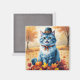 Oriental Blue Cat In Autumn Leaves Thanksgiving Magnet