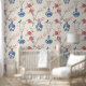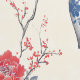 This exquisite design combines classic blue-and-white porcelain vases adorned with floral motifs, intertwined with blooming red peonies and delicate branches of cherry blossoms. The graceful addition of a blue bird perched on the branches adds a serene, artistic touch to this timeless and elegant pattern.