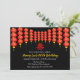 Asian Chinese red lanterns, representing joyful celebration, hanging from the top with a Chinese symbol ( Japanese kanji symbol ) for longevity sitting in the centre birthday party invitation especially designed for seniors.