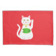 This awesome Patterned pillowcase features a graphic design image of a lucky oriental white waving cat. The cat has beautiful gold eyes and is wearing a gold medallion on the collar around its neck. The cat has pink ears and whiskers. This cute little kitty is holding a golden token with green jade inlay and a message in golden text that says "Good Luck".