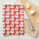 This awesome patterned kitchen towel features a graphic design image of a lucky oriental white waving cat. The cat has beautiful gold eyes and is wearing a gold medallion on the collar around its neck. The cat has pink ears and whiskers. This cute little kitty is holding a golden token with green jade inlay and a message in golden text that says "Good Luck".