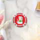 This awesome set of poker chips features a graphic design image of a lucky oriental white waving cat. The cat has beautiful gold eyes and is wearing a gold medallion on the collar around its neck. The cat has pink ears and whiskers. This cute little kitty is holding a golden token with green jade inlay and a message in golden text that says "Good Luck".
