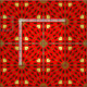 Seamless decorative geometric pattern featuring geometric shapes in yellow, beige and black on a red background.