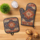 Oriental Persian Turkish Carpet Pattern Oven Mitt & Pot Holder Set