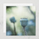 Big seed cores of oriental poppy, shady garden background, beautiful blue hues, floral art photography.