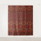 This large wall tapestry features a red and blue Oriental rug design that was modified and applied by Alma Wad from an antique image that was first published in a book.