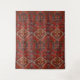 Oriental rug design in red and blue - an antique image is PRINTED on this item - illustration from an antique book- it was edited and applied on this wall tapestry by Alma Wad .