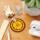 Keep your car keys on this basic button key-chain with this famous Japanese Sakai Mon in yellow on a red background.