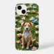 Origami puppy sitting in an origami flower field iPhone 14 case.