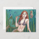 Original artwork of a cute bubble blowing mermaid and a curious seahorse on a nicely printed postcard