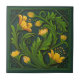 Original artwork digitally painted by Aliss Anos. Ornate faux relief green and bright yellow wild flowers ceramic tile for kitchen, bathrooms and more