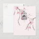 Original cherry blossom birdcage artwork postcard