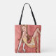 Elevate your style with this Go-Go Girl allover printed tote bag, featuring Leandra's sultry, fashion-inspired artwork. Perfect for fashion lovers, this chic bag adds a vintage glamour touch to your everyday look. Ideal for fashion shows, bachelorette parties, or simply as a unique gift for the trendsetter in your life. Carry your essentials in style while showcasing your love for retro fashion and modern flair with this statement accessory.