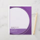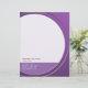 Your name and contact info it printed on the lower part, on the darker section. Each text element can easily be customised, and you can also resize, move or remove. Text colour, font and size can be altered as well. By default the back side background is set to purple, for the most covered by a semitransparent white layer. This makes any background colour shine through, and it's up to you how you like to colour this letterhead.