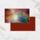This image shows stars, dust and gas inside the Orion Nebula, 1500 light years from Earth. This is a composite photo, based on ultraviolet and visible light images from the Hubble Space Telescope, and infrared views from the Spitzer Space Telescope. The result shows a swirling mass of gas and dust in shades of orange, green, blue and purple, spotted with bright stars. (The colours have been enhanced slightly here.)