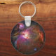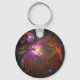 This is a photograph of the massive Orion Nebula, taken by the Hubble Space Telescope. The Orion Nebula is the birthplace of many new stars, and over 3000 stars are present in this image, surrounded by swirling clouds of gas and dust. The colours of the original photo have been enhanced slightly, and include rich oranges, pinks and purples.