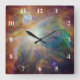 White numbers on a clock face and a beautiful nebula space image of the Orion Nebula thanks to NASA/Hubble Space Telescope.