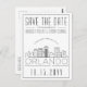 A unique wedding save-the-date postcard for a marriage taking place in the beautiful and attraction filled city of Orlando, Florida. This invitation features a stylised illustration of the city's unique skyline with its name underneath. This is followed by your wedding day information in a matching open lined style. On the reverse side of the post is your address information. All individual elements of the invite card are unlocked so feel free to change any details necessary such as font sizes, styles and more by using the customisation function. Have fun being creative and making it your own!