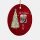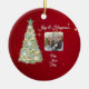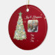 Send warm wishes this holiday season with our whimsical watercolor Christmas tree holiday ornament gift, featuring your personal photo! This delightful design showcases a beautifully illustrated Christmas tree in rich green hues, adorned with golden swaying ribbons, white snowflakes, and cute watercolor ornaments. Set against a festive red background, this card radiates holiday happiness With space for your favourite memories, it’s the perfect way to share memories with family and friends. Create a unique keepsake that captures the magic of the season!