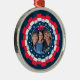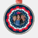 Keep your hero close to your heart and on display with this Custom Photo USA Military Ornament. This premium circular ornament features a dynamic, 3D-effect pleated ribbon border in patriotic red, white, and blue, encircling a navy blue frame filled with white and teal stars. The centerpiece is a dedicated photo upload area, allowing you to feature a portrait of an active-duty soldier, a beloved veteran, or a special military memory.