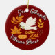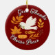 Set against a deep red background, the phrase “Give thanks, choose peace” shines in crisp white lettering, creating a striking contrast that captures the spirit of the season. The transparent design blends seamlessly with the ornament’s surface, offering a polished, modern look with timeless meaning.