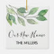 This personalised new home ornament is decorated with watercolor greenery and stylish script typography.
