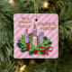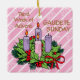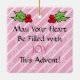 Our square pink ornament for the Third Week of Advent features an Advent wreath on the front atop a pattern of white diagonal stripes containing the word JOY. Joy is the theme of the week. A heartfelt sentiment appears on the back. + Front: The Advent wreath is made of evergreens and holly with two violet candles and a pink one being depicted as lit. Pink (or light rose) is the liturgical colour of joy for Gaudete Sunday. It signals a shift in mood from the solemn preparation of the first two weeks of Advent to the joyful anticipation of Christmas for the remaining two weeks. In actual practice, the remaining violet candle is lit the following Sunday and is pictured as such on the final ornament in this series. + Image Credits: Black and white Advent wreath AI-generated by mimicoloringdesigns via Pixabay, modified and colourized by Saints_Aplenty; bow by Elionas also via Pixabay. + Back: A wish for JOY that can be personalised.