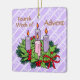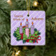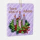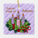 Our square violet ornament for the Fourth Week of Advent features an Advent wreath on the front atop a pattern of white diagonal stripes containing the word LOVE. Love is the theme of the week. A heartfelt sentiment appears on the back. + Front: The Advent wreath is made of evergreens and holly with all four candles depicted lit. The background is violet (or light purple or lilac) because it is the liturgical colour of the pre-Christmas season. The mood having shifted last week from penitence, reflection, and preparedness to joy at the coming of the Saviour, the colour violet now emphasises the royalty of Jesus as Son of God, Son of David, and King of Kings. + Image Credits: Black and white Advent wreath AI-generated by mimicoloringdesigns via Pixabay, modified and colourized by Saints_Aplenty; bow by Elionas also via Pixabay. + Back: A wish for LOVE that can be personalised.