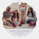 Send season’s greetings in style with this modern minimalist ornament card featuring your favourite family photo. Designed with clean typography reading “Happy Holidays” in black on a crisp white background, it blends simplicity and elegance for a timeless festive look. The scalloped shape printed on superfine eggshell or matte paper gives a tactile, high-quality finish. Easily personalise it in Zazzle’s design tool by adding your family name, greeting, or custom message. Optional envelopes make it ready to mail or gift instantly. Perfect for families who love clean design, this contemporary card doubles as a keepsake ornament that can hang on the tree — a thoughtful way to share warmth and style this holiday season. The image shown is for illustration purposes only to be replaced with your own photo. The placeholder image is of a family portrait, the family including a little girl are wearing fair isle sweaters and socks. They are all wearing Santa hats including the family dog, a golden retriever. They are sitting on a sheepskin rug in front of a Christmas tree.