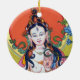 This special ceramic ornament has the image and mantra of White Tara on one side and a close up of her face on the other side. It makes a wonderful appearance in your shrine room!
